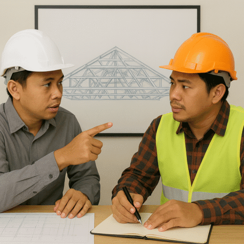 02Kami menyediakan gambar desain atap dan perhitungan biaya agar pelanggan bisa memahami detail proyek secara jelas.