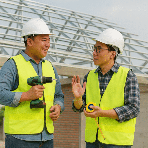 Kami memiliki tim aplikator baja ringan berpengalaman yang telah menangani berbagai proyek pemasangan atap baja ringan – mulai dari rumah tinggal, ruko, pabrik, gudang, hingga bangunan komersial.